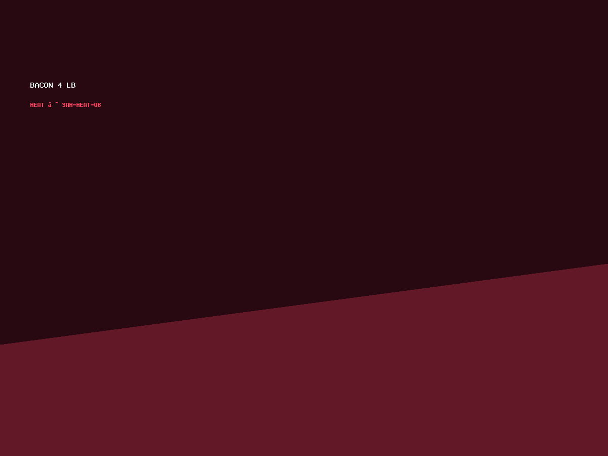 Home / Meat / Bacon 4 lb Bacon 4 lb$17.33 Thick cut Bacon 4 lb quantity Add to cart SKU: SAM-MEAT-06 Category: Meat Tag: sams Description Reviews (0) Description Smoky flavor Reviews There are no reviews yet. Be the first to review “Bacon 4 lb” Cancel replyYour rating * Rate… Perfect Good Average Not that bad Very poor Your review *Name * Email * Save my name, email, and website in this browser for the next time I comment. Related products Chicken Thighs 10 lb $19.95 Add to cart Rotisserie Chicken 2‑pack $13.44 Add to cart Ground Beef 10 lb $33.60 Add to cart Tilapia Fillets 10 lb $26.25 Add to cart