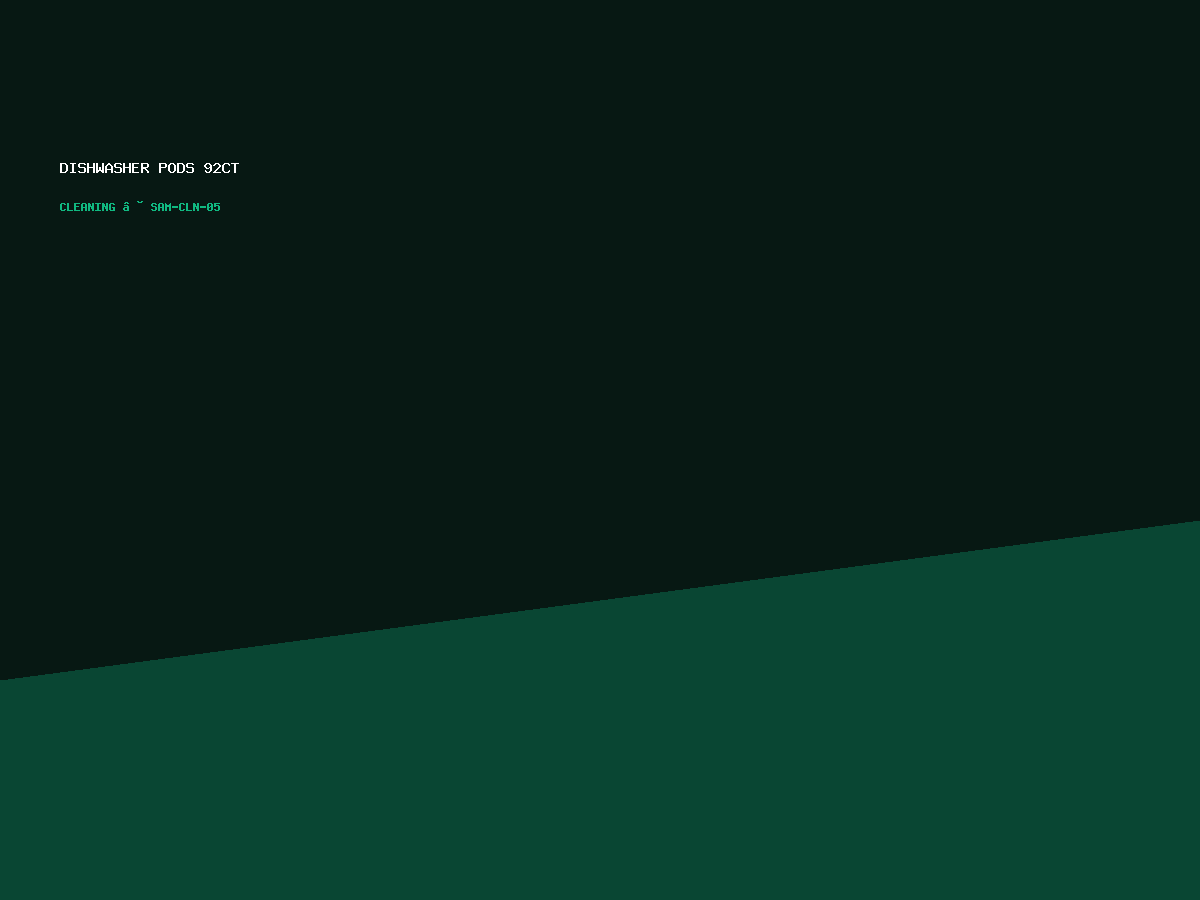 Home / Cleaning / Dishwasher Pods 92ct Dishwasher Pods 92ct$14.07 Lemon Dishwasher Pods 92ct quantity Add to cart SKU: SAM-CLN-05 Category: Cleaning Tag: sams Description Reviews (0) Description Streak‑free shine Reviews There are no reviews yet. Be the first to review “Dishwasher Pods 92ct” Cancel replyYour rating * Rate… Perfect Good Average Not that bad Very poor Your review *Name * Email * Save my name, email, and website in this browser for the next time I comment. Related products Tide HE Liquid 92oz $12.60 Add to cart Fruit Snacks 90‑count $15.12 Add to cart Gain Liquid 96oz $12.50 Add to cart OXI Booster 5lb $11.55 Add to cart