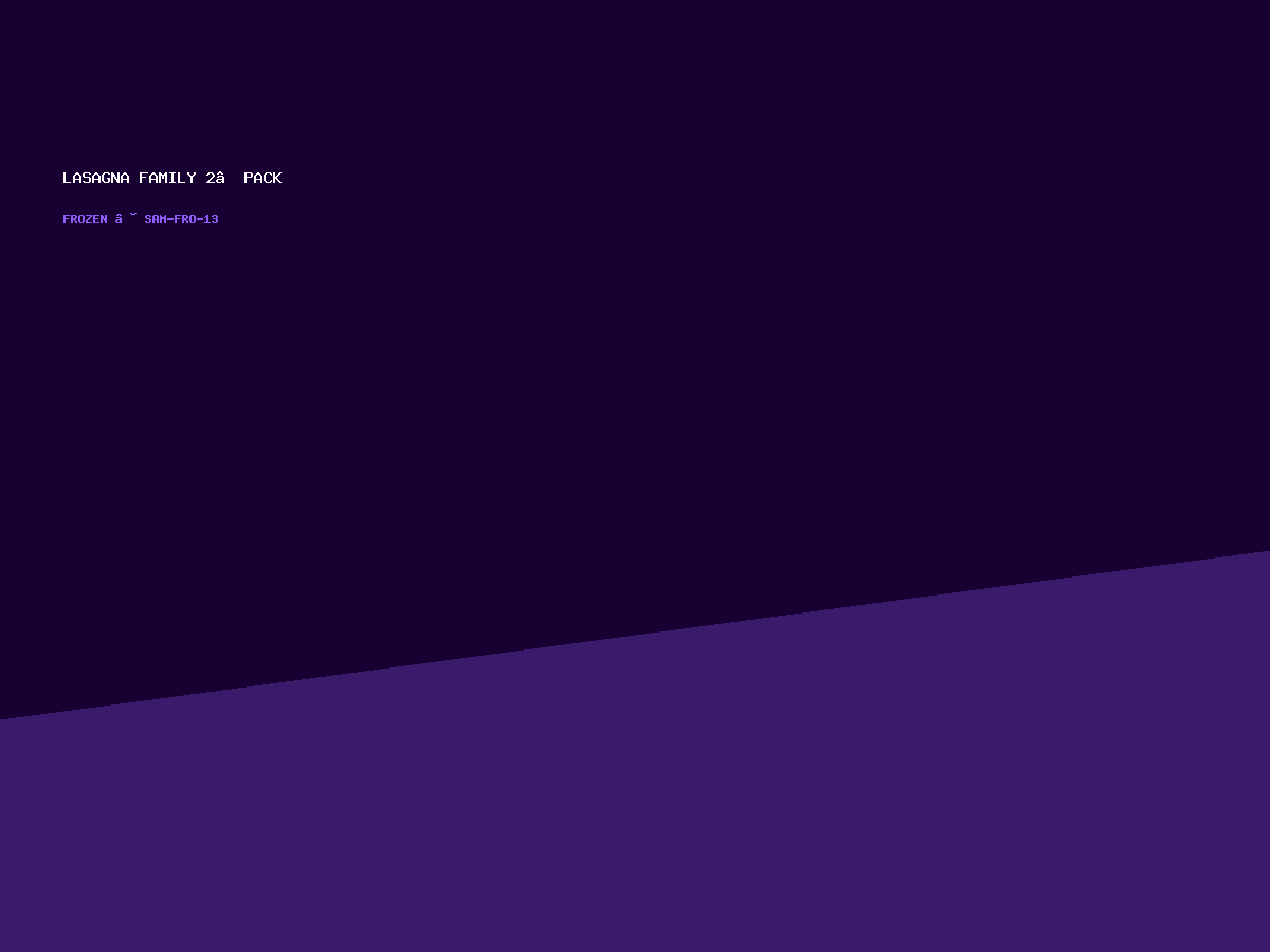 Home / Frozen / Lasagna Family 2‑pack Lasagna Family 2‑pack$16.59 Bake & serve Lasagna Family 2‑pack quantity Add to cart SKU: SAM-FRO-13 Category: Frozen Tag: sams Description Reviews (0) Description Cheesy classic Reviews There are no reviews yet. Be the first to review “Lasagna Family 2‑pack” Cancel replyYour rating * Rate… Perfect Good Average Not that bad Very poor Your review *Name * Email * Save my name, email, and website in this browser for the next time I comment. Related products Variety Chips 24‑pack $14.70 Add to cart Chicken Thighs 10 lb $19.95 Add to cart Bounce Dryer Sheets 240ct $8.82 Add to cart Granola Bars 48‑count $13.13 Add to cart
