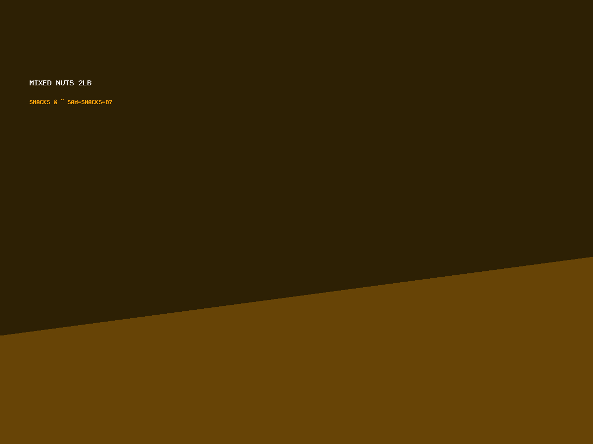 Home / Snacks / Mixed Nuts 2lb Mixed Nuts 2lb$14.49 Lightly salted Mixed Nuts 2lb quantity Add to cart SKU: SAM-SNACKS-07 Category: Snacks Tag: sams Description Reviews (0) Description Cashews, almonds, pecans Reviews There are no reviews yet. Be the first to review “Mixed Nuts 2lb” Cancel replyYour rating * Rate… Perfect Good Average Not that bad Very poor Your review *Name * Email * Save my name, email, and website in this browser for the next time I comment. Related products Variety Chips 24‑pack $14.70 Add to cart OXI Booster 5lb $11.55 Add to cart Ground Beef 10 lb $33.60 Add to cart Nutella 2‑pack 33oz $13.34 Add to cart