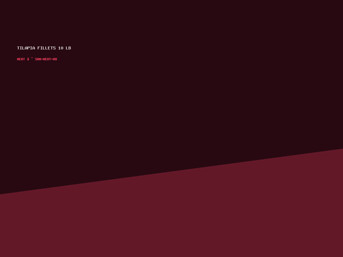 Home / Meat / Tilapia Fillets 10 lb Tilapia Fillets 10 lb$26.25 Frozen Tilapia Fillets 10 lb quantity Add to cart SKU: SAM-MEAT-08 Category: Meat Tag: sams Description Reviews (0) Description Mild white fish Reviews There are no reviews yet. Be the first to review “Tilapia Fillets 10 lb” Cancel replyYour rating * Rate… Perfect Good Average Not that bad Very poor Your review *Name * Email * Save my name, email, and website in this browser for the next time I comment. Related products Pork Shoulder 15 lb $28.35 Add to cart Bacon 4 lb $17.33 Add to cart Chicken Thighs 10 lb $19.95 Add to cart Variety Chips 24‑pack $14.70 Add to cart